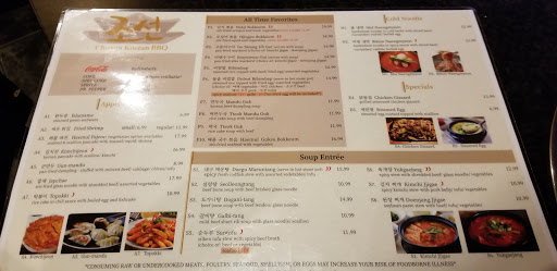 Ive been hearing a lot of hype about this Chosun BBQ restaurant, so.....me liking to explore a variety of ethnic dishes, I took my girlfriend to this place last night. Coming in to the restaurant, it felt very welcoming! Right from the get go, our host seated us and our server was with us in a matter of seconds! After bringing our refreshments, the server explained the menu very thoroughly, explaining what type of bbq meat they had and that was very popular, to all the traditional Korean dishes they had to offer. My girlfriend ordered the Yangneum galbi with nangmeun( korean cold noodle dish that is PHENOMENAL!!) and I went with the ooguji galbi ttang( korean spicy stew with rib meat it it that is also an amazing dish!!) Throughout the meal, our server was very attentive and refilled our drinks whenever it was half full and asked if we needed anything when our side dishes were running low. I can write a book on how well our experience was at Chosun BBQ. To cut it short, the food was excellent and the service was paramount! Loved it and will come again soon!