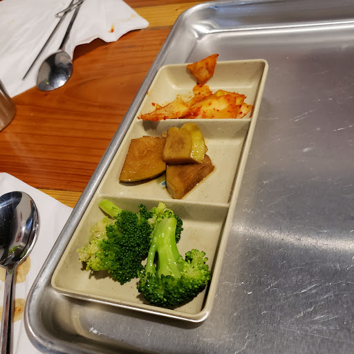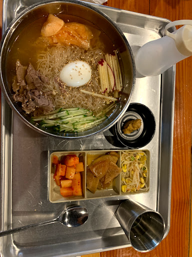I wasnt even planning on eating that morning I went in, (September 1st), but a worker let me inside at 9am, although they didnt open until 11pm. A very nice lady came to give me a menu and tell me to eat something since I was hungry! Really, I didnt want to intrude, so all I ordered was a pancake. I sat down and my pancake came out, so I began to eat it, but then one of the cooks brought me a full pitcher of ice water, and a bowl of rice, and then a bowl of sauce, and then 5 more bowls of side dishes to go along with it! I had no idea that I was going to get served like royalty when I was just lost in the city and it wasnt even time for them to open the store. Everything tasted so wonderful and it was really good to try a slice of Korea for the first time. I recommend it 10/10.