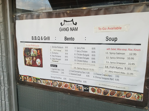 Gangnam is a lot better than the Korean restaurant that was there previously. Brighter and cleaner. The food is pretty good. I ordered the spicy pork bulgogi (Gochujang daeji bulgogi) and some fried dumplings. Be aware that some food items like the dumplings are not on the menus at the table. Youll find them on the menu board hanging on the wall. Most menu items seemed to be between 10 - 15 dollars. And as with most Korean restaurant your also served kimchi and all the pickled sides. Ill be back to try the Kalbi and Bi Bim Bap.