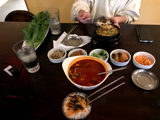 I visited here three times here. The first two visits about two years ago were horrible because my fiancee and I ordered two dishes and waited like more than 1.5 hours to get my food on my table. I visited here last week since one of my friends wanted to eat some Korean foods. This time I was pretty satisfied. I ordered seafood soft tofu soup, which was great. Side dishes were pretty authentic. On top of that, they served the foods very quickly!!