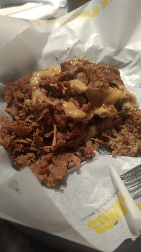 The chicken comes fairly small at this BWW, and no matter what you ask for, you wont get a whole lot of sauce on your wings. I got a Caesar salad and they went so light on the dressing that I was sure theyd forgotten it entirely. The potatoes with melted cheese is possibly their best menu offering.