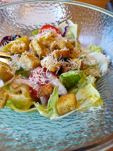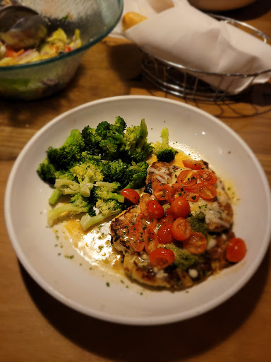 I had a caprese bruschetta and a zuppa Toscana with salad and breadsticks. Both tasted fine, but the menu is really "overgarlicy": too much garlic everywhere. The staff is really good but the restrooms are dirty.