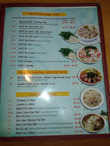 Always good food and service. Banh pho xao, mi xao, pho, banh mi, bun.all good choices. inexpensive.
