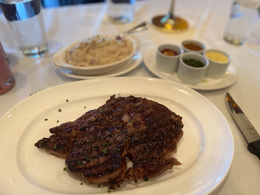 A steak restaurant that cant cook steak properly! Not kidding. I found this place online looking for a New York Strip steak in Wichita. Went there the first time on a Sunday evening last month. Despite their website saying that you better make a reservation because they are full all the time, the place was almost empty. The service was very nice. Its very pricey (New York Strip is $40 and that does not include any sides), but I was willing to pay for good food. Too bad. The meat was not cut evenly, much thicker on one end than the other. And of course the two halves of it ended up cooked differently. Well, I didnt mind sampling what was basically 2 different steaks. And the server brought 4 different sauces to try. I ended up liking the steak(s) with one of them and decided to give this place another try. So tonight was my 2nd visit, and it will be the last. Because this time my steak was not only cooked differently on the two ends, it was also burned to a char on the bottom. What a shame. This place is clearly overrated and not worth the money.