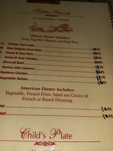 Went here with my girlfriend and we got the two specials they had that night: Rainbow Shrimp and Mandarin Delight. We both concluded that the food was bland and inoffensive, and probably catered to picky American palates. However, it was a pleasant dining atmosphere, and our server was polite and attentive. Probably wont head here again.