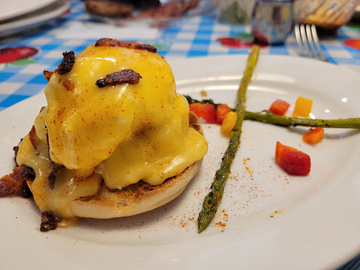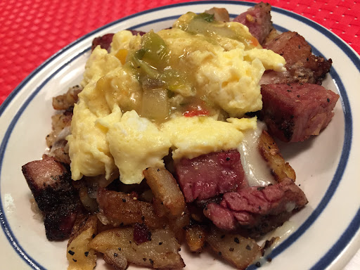 In town a little early for something I needed to do. Looked around the Internet and Trip Advisor for the best breakfast. Settled on the Doo-Dah Dinner. The place was pretty full but I got in quickly. The waitress said it was because they werent to busy because of the weather. Would hate to see it if it was really busy. Sat down at the counter and could see the food being prepared. Lots of amazing looking food went by. The Steak and Eggs Benedict looked wonderful. I chose a Pulled Pork stuffed Waffle with eggs and Sausage Gravy. As I waited for the Food to be prepared the waitress brought out a dish of Monkey bread. Delicious. Enjoyed the food and watching the workings of a bustling dinner. Will definitely be back for steak and eggs soon.