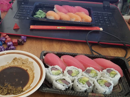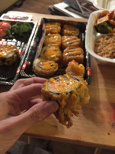 Ive eaten great sushi and sashimi back in California and the food that we ordered here has to be on the opposite side of the scale. the salmon that we ordered did not have the fresh salmon color, but looked dull like they were defrosted or something. and the taste was as bland as the look. I did not expect to be Cali quality, but the Dillions sushi bar has better quality than the ones we ordered here. maybe their hot cooked foods are better, but not their sushi stuff, thats for sure. We also ordered their veggie tempura...wow. it basically looks like something you get at a very bad mall store. the batter was thick and GREASY. maybe it was a bad day for them? I dont know, but I can assure you its the last time we order here.