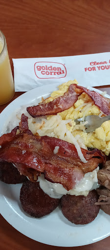 I love Golden Corral! Love the steak wished I knew what seasoning they use that liquid stuff I guess. I do wished however they did have more with their sad bar. I am at Golem corral now and I hate to but have to change what I said. Since they have breakfast stuff they are missing a lot of the lunch foods. The potatoes taste like they r old, a funky taste. Also the French toast is hard the bisquits for bisquits and gravy are hard. And no steak wich is why I come here. Very disappointed today Editing again, there are no cucumbers for salad and only wings and thighs for their chicken, no breats. I am so dissapointed, disappointed that I dont know if Ill be back. First time ever being this dissatisfied with golden coral. I feel as though we wasted our money paying for these to go boxes