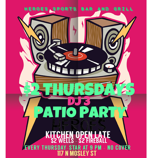 Heros is OK for lunch and during the weeknights. I dont hang out downtown very often on the weekends. The few times I have been here during the later hours was not my scene. If you like weekend crowds you will find them at heros.