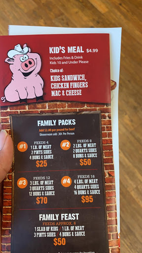 Prices are reasonable, atmosphere quiet yet constant radio reminders of the business is a bit much. The dining area was clean but limited space in the restroom department for larger crowds. Workers not overly friendly on my visit but may have been tired from long work day. Ribs did "melt" off the bone though. Rating of three because nothing really jumped out at you different from other rib locations.