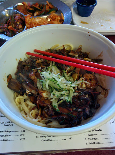 Tasty kimchi, jjamppong brimming with seafood and made with the heat level desired. Best kimbap in town.