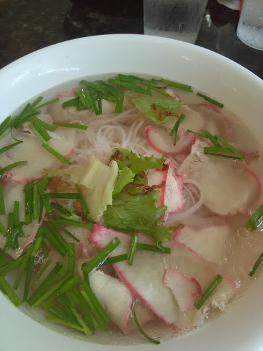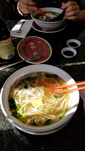 My first time in a Vietnamese Restaurant. I knew I wanted some Pho ("Phuh") and told the server this was my first time to order it. He suggested the Pho Tai and I got a big bowl of it. The four servers worked as a team. Out came a plate with bean sprouts, basel leaves on the stem, sliced jalapeno peppers and what looked like finely quartered limes along with plenty of napkins, special spoon, heavy chop sticks and a fork. I was told that I could experiment with the stuff on the side plate and mix them in to the main bowl to suit my taste. He told me all about the Rooster sauce, the fish sauce, the hoison sauce. As I started adding stuff to my bowl of Pho, a couple of folks checked out. Two of the servers immediately approached the tables and together had them ready in just a minute or so. I was impressed that they sprayed down the table as a final step before finishing (rather than just a wet towel you see many places.) I ended up adding all of the basil leaves, all of the sliced jalapenos, and experimented with the Rooster sauce until I got it hot like I want it. I barely used any of the bean sprouts. I dont think a soup-type dish should crunch in your mouth. This was a great first experience/exposure to "Pho".
