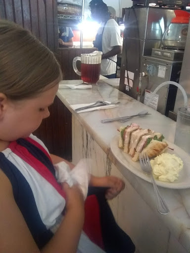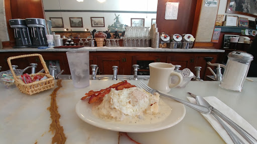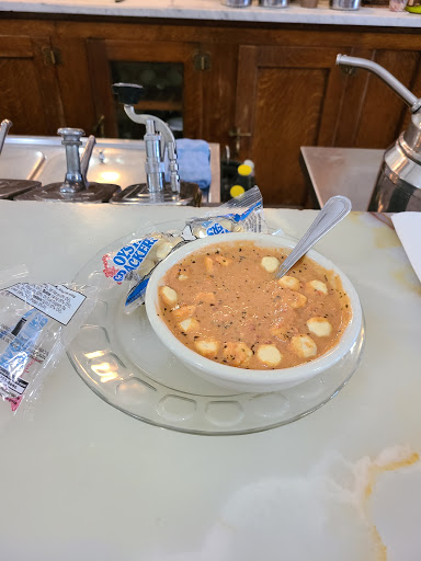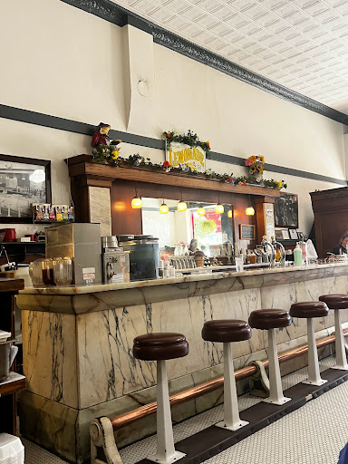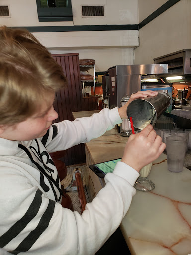 Cool legitimately old-style cafe with (i think) original everything from the 30s. We went for lunch on a Monday and it was actually crowded-good sign. We had 3 different sandwiches which were all good but not great. Slightly disappointing, but the salad that came with it was better than I expected & the Ranch was amazing. We had an ice cream soda & a shake, which was nothing to write home about. So 4-stars for atmosphere, 3.5-stars for service, 3-stars for food, and 1-star for the bathroom-you had to actually walk THROUGH the working kitchen to access it! And it wasnt worth the effort. Maybe in the 30s customers didnt need to use the bathroom!? All in all-give it a try for its genuine retro vintage charm but dont expect gourmet food or top notch service. Sorry if that offends, but Im a bit of a foodie and have been around the food block!