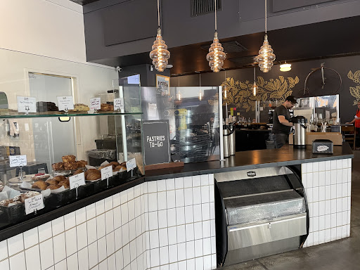 If youre the kind of person that mainly cares about atmosphere/aesthetic, then this is the place for you. Service was really great! We should have inquired further about the "home-made" lemon/poppy muffin. It was light in flavor and heavy in texture (aka gross). Thanks Mrs. Crocker for my breakfast muffin... no thanks. I was told the beans they were using for my cortado were a "South American Blend"... whatever that is?? I believe they were trying to achieve a flavor profile of full-bodied, deep chocolate, and maybe a caramel finish. I got a little of that at the very end, after the intense sourness of under-extraction waned. I watched my shot sit a full 40 seconds while they steamed the milk for it. At this point the crema had completely vanished along with my hope for decent espresso *Poof*