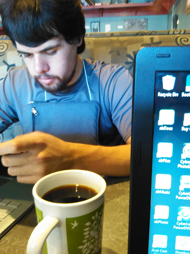The staff is great. The coffee is good, and its the best place in town to have a French press all to yourself an study in a quiet booth. Its open both early and late, and also serves alcohol, so you wont be inundated with rampaging children.