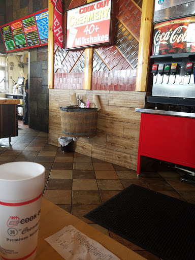 Update. The people taking the orders arent paying attention to the customers. Expect problems with your order. Cook Out is a small chain based in NC. The burgers are like the burgers you would cook on a grill. They are delicious. You can get them anyway you want, or get one off their menu. My favorite is the cook out style. It comes with chilli, coleslaw, and onion.The onion rings are simply the best. There is a huge selection of thick creamy shakes. You can mix the different flavors of shakes for a truly unique milk shake.