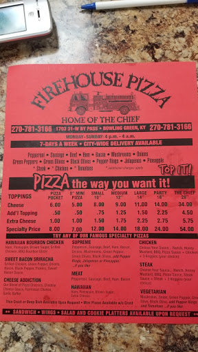 FIREHOUSE PIZZA WAS GREAT TONIGHT I ORDERED MY FAVORITE ERIC SANDWHICH AND BREAD STICKS ... THE CREW TONIGHT WAS OUTSTANDING .. GREAT SERVICE FELT VERY WELCOME ESPECIALLY BY THE YOUNG GENTLEMEN WORKING ... SUPPORT LOCAL AND GET YOU SOME FIREHOUSE PIZZA ... THEY HAVE BEEN AROUND THIS LONG FOR A REASON