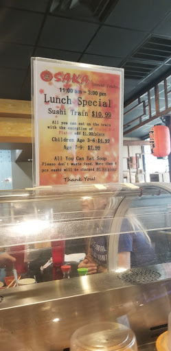 I love eating here. The staff is super friendly and courteous. If there is a wait its not long. My favorite part is that it has a sushi train. Its so cool to be able to sit down and just wait for the sushi you want to come on a conveyor belt. Their soup and sushi is pretty delicious and I like that they also have a dessert on the train. All in all, Id definitely recommend. If I have the money I try to go at least once a week. Worth it!