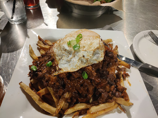The menu comes across as inventive for pub food - wonton chips with guac, shishito peppers with goat cheese - but the flavors end up being pretty linear. The service is excellent, the portions are generous and the price point is fair so Im sure youll never leave angry with an empty wallet nor an empty stomach. The brisket comes as kind of garbage plate. The base of the dish is a cornbread waffle that while light and fluffy is bland. That is topped with a coleslaw that I believe would be good standing on its own gets lost. Finish that with a heap of fries and a slice of beef brisket that is more fat than meat and theres the dish (with a side of collard greens). Again the portion is more than generous and the price isnt terrible, but $17.50 for fat, fries, and bread leaves one wondering where is the value.