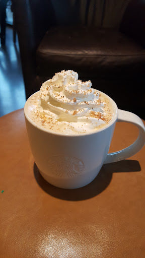 This is a very nice Starbucks. It is brand new and pretty chill. the 4 star is because it was chill-y kind of a cold space both literally and figuratively. Take a jacket.