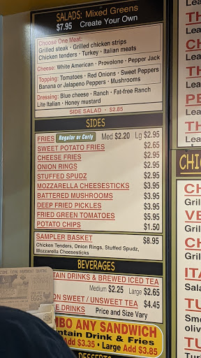 I love their subs. I always get a 7 in. my cheese steak w/ American and provolone, light lettuce, mushrooms, pepperoni, banana peppers, A1, mayo and grilled onions. I always get fries and a drink. Great price for the amount of food you get. Service is always great. I have never had a bad experience.
