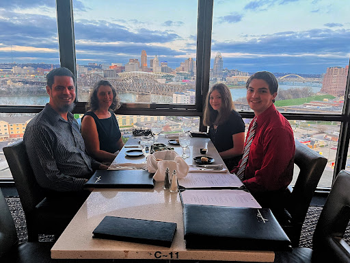 My party and I were absolutely shocked that this restaurant, Eighteen at the Radisson, is considered a fine dining establishment. We had checked the reviews online prior to going to the restaurant, so we thought we would have a wonderful meal and breathtaking views that our kids and out of town family (first time for both) would enjoy. What we got was a beautifully renovated restaurant complete with the most comfortable chairs we had ever sat in and yes, incredible views of the city on a picture-perfect night. What we didn’t get was upscale dining. Instead it was two tacky hostesses (one with a tattoo of a large butcher knife on her forearm) greeting us and a busser who filled our water and dipped his tie into my butter, water glass and bread. What happened to tucking your tie in to your shirt while pouring the drink? The server, Nikki, came over and impressed us at first. Like I said, we had my two kids with me and without asking first, Nikki returned to the table 15 minutes later with my son’s kids meal. I never understand why restaurants bring the kids meal so early. She served it to him without even asking us if we would prefer the kid’s meal before or during our meal. That would-be class and even casual dining restaurants do that. If she had, we would have said with our meal. But now, our son was eating right after we had salad and soup and he would be done before we even started. We mentioned that to Nikki and she said our meal was coming right out behind her. Eight minutes later, it arrived. Before I go delve into the meal I must say the best part of the whole dining experience were the rolls and butter. The great tasting butter complemented the warm toasted rolls perfectly. The meal came with the Linguini Carbonara being the best out of the whole order. It presented well and according to my brother-in-law was very good. We had two Filet Mignons one of which came out rare when specifically asked to be medium plus and told that there would not be any blood red look to the inside. My son had the Top Sirloin which we had to cut away about 25% of the steak to remove the gristle and fat. All the steaks had no flavor. None! It tasted and looked like a meal I could do at home without any seasonings or special training. After recooking my Filet, Nikki brought it back missing the mashed potatoes that were on the plate (which we ALL mentioned I wanted back), and in its place were additional green beans that I had taken off originally. It was the same steak complete with my knife wound but 1/3 of our shared potatoes were left in the kitchen. And, the taste was so bland; the shavings of butter didn’t help do it justice. That might have been better to order with the shavings of butter melted on the steak just prior to coming out of the kitchen. My wife ordered the Duck Breast and before I got my meal back she was already asking if it was cooked right. The duck had no flavor and was nothing of a fine restaurant taste. How can you consider these “delectable… carefully crafted (meals) by seasoned culinary experts in the kitchen?” For a steak house, it was very expensive for “cheap” quality food. And to top it off, the dessert options we heard when we sat down now dwindled to just a few. Nikki lead off the menu now with Graeter’s Ice Cream (one flavor only). Then we learned why it was first mentioned. Some of the other desserts were now not part of the repertoire. The chocolate cake had gone. How did you plan to “of course, leave us with a sweet dessert to top of the night” when at 6:40pm on a Saturday night you are out? We left without dessert and unfulfilled. So, when you say, “there are no doubt plenty of Cincinnati restaurants to choose from when dining… and if you’re looking to try out one of the best restaurants in Cincinnati,” I’d venture to say go elsewhere. All you will get at Eighteen at the Radisson is an experience that revolves around the view but doesn’t provide you fine dining at the core.