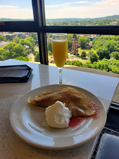 Meh pretty much sums it up perfectly!! Thought this would be a great place for Valentines dinner... Now I kinda wished I hadnt. We made reservations less than a week before we needed it, and had no problems with that end what-so-ever. Word of advice, go in the 2nd door from the parking lot and take the elevators up. They dont really put any signage up until youre IN the elevator. Tip 2? Pay attention to what letter section youre sitting in, because if you get up to use the restroom, itll be a lot easier to find your seat again. The restrooms and the lobby stay put, your table does not. We were seated after a very short wait, next to the window and our server said hed be with us shortly. They were still sort of busy, but not incredibly. 10 minutes later he finally came back and we asked for a wine list and he was gone again for awhile. We put our food order in and the salads came out pretty quickly, but by what I can only deem a food runner/bus boy/water filler. I saw that kid more than my waiter the entire night! The food came, and it was nice. The steaks were huge! But yes got it medium and it was dry... but not dry dry, it was juicy, it was more like they let it age way too long. was not worth $36. the potatoes were awesome though! And the Riesling was darn near perfect, could have been a tad more chilled, but nice. Yes the floor moves and I had been told you dont notice it, but you do... I get horrible motion sickness, and after about a half hour i was ready to go and not admire the view anymore. I suggest a table away from the window, maybe one that looks straight out over the city in a cozy booth might be better. The service was severely lacking. I had heard and seen him interacting with other tables, telling them their offerings and what not, when he was not pleasant to us AT ALL. I guess they had a special tasting menu for the evening for $120 a couple, he didnt ask us, but maybe because we were looking at the menu... but we were looking over the highway at the time, so there wasnt much else to look at. He didnt really stop at our table as he was passing through and asking everyone else if they were ok. It was the little things. Over all, maybe if was staying here, or just wanted a drink, they have a stationary bar, and a few tables, and they have a lounge area, where you can get a drink and sit in nice chairs and just watch the city... that might be nice... but for the food? Not really worth the money, and not even one time really....
