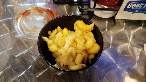 The food came out quick, but didnt taste like it had been sitting out for a while beforehand. I got Southern Heat and she got Mild. Mild didnt really have any heat at all to it, which worked out, while the Southern Heat was hot, spicy and smoky. The baked beans were decent and were veggie beans (didnt appear to be made with bacon). The mac and cheese was cheesy, but was bland. The potato casserole was pretty decent too. Overall, we left satisfied.