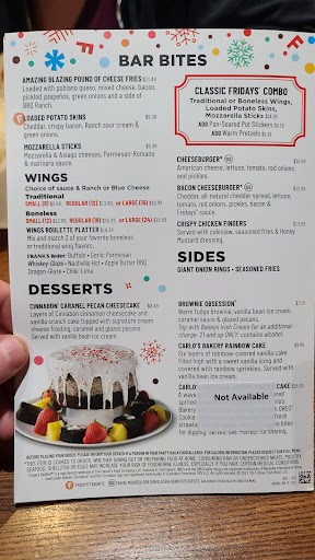 Overpriced with small portions. My wife and I ate there fairly regularly, but stopped after the past few visits. The service went really downhill compared to earlier times. One time we were seated and 15 minutes went by without even getting water. We left and as we were leaving, the greeter asked if we enjoyed our meal, I told her what happened and she looked shocked as I was clearly displeased. We went again not long after and though the experience wasnt that bad, they only served us our drinks and food but never returned to check on us. One of the sides was missing. When we asked for the check, they only deducted the price of the side and it took them 10 minutes to process the bill. Then just about six months ago, my friend came by my place and I offered him lunch and he chose Fridays. I didnt object. We were seated, got our water quickly. My friend got the same thing I did, a chicken caesar salad for $8.95. The picture of it was good size. When they brought it, we were informed that this isnt the dinner portion size which cost $3 more, rather a smaller portion and they apologized. Fine but the salad was no bigger that what would be in a bowl of a side salad. I told him that the picture on the menu is misleading, but he said there was nothing he could do about it. That was my absolute last ever visit to this place regardless.