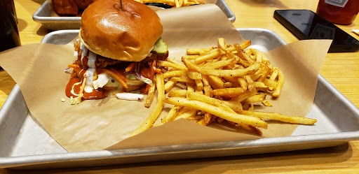 Waited 45 min to get a table. When food finally came, it was mostly wrong (not what we ordered). We asked for extra sauce and napkins that never came, we had to ask another server to get it. The wings was too salty, the burgers were dry, and the fries was burnt. This does not live up to the other Buffalo Wild Wings Ive ever visited. Never coming back here again. Disappointing!