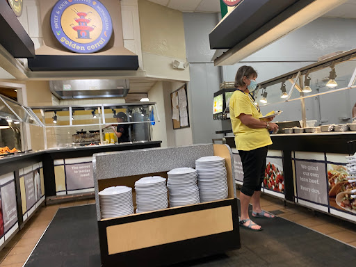 Its a typical Golden Corral. However, it smells musty, like old wet carpet. The quality of food was displeasing and visually not appetizing . On our last visit the labels of items were rarely what they were on the bar. Just walking around looking at some of the food made us lose our appetite.