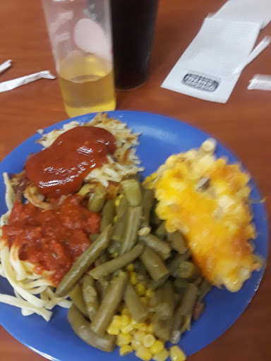 Bad service the second we walked in the door. The girl taking drink orders was rude and seemed impatient. The cashier walked away from us. The food was mediocre at best. Chicken was red in the middle. Spaghetti noodles were hard. Mashed potatoes were good though. Maybe this place is better on certain days, who knows.