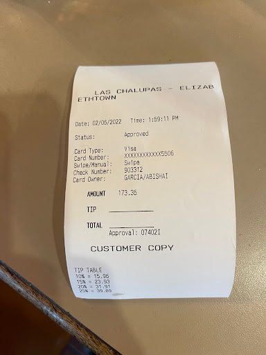 Probably the best restaurant in Elizabethtown. Certainly no reason to go to any of the chains when you can eat here. Portions are good, chips and salsa are delicious - you will want more of the smoky hot salsa than they will give you, but theyre happy to accommodate any request and are very attentive.