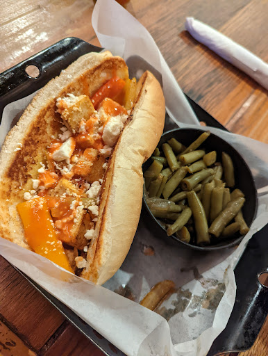The atmosphere and decor of this place are nice and interesting. Between the alcohol and names of some of the menu items, the place is not very child-friendly, and we liked having a more adult place to go, but the good ends there. The waitress was friendly, but very slow. It took an hour and a half from the time we arrived until we left, and we were only there for dinner, not to stay and hang out. The appetizer was good. The rest was not. The sandwiches were very bland, like chewing on a sponge. A Reuben should have Thousand Island dressing, not mustard. Maybe theres a reason its called a "Bitchin Reuben", since thats what it makes you want to do. The desserts are not made from scratch as advertised. We recognized the coconut cream pie as being exactly the same as one you can buy in the frozen section of a grocery store, and it was still frozen in the middle! The whipped cream on the desserts is frozen Cool Whip. We waited more than 15 minutes for our check, and after we put the card in it, waited another 10 before finally just leaving cash and walking out the door. It was not busy while we were there. We saw three servers and only about 5 tables were in use. All together, we had two non-alcoholic drinks, an appetizer, two sandwiches and two desserts and the total was about $50. Absolutely overpriced for the service and quality of food.