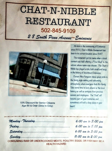 Its historic in the heart of Eminence. It has old fashioned foods and old fashioned flavors.