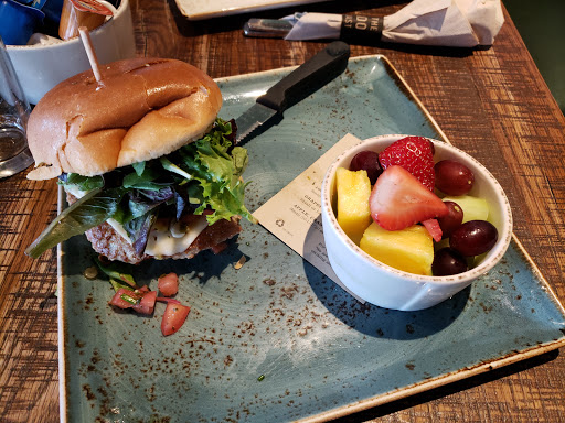 Disappointing. Im a vegan, but love to eat out with my friends. I researched before going and the burger looked like my only option. Veggie burger it is. The burger itself was fairly standard, very bland, good enough to let me enjoy my friends company. The problem was in the salad. The inch long piece of bacon you can see in the photo could have been an oversight, but the slimy wilted greens were disgusting. I tried to eat the greens but have up on it. With the bacon and bad greens together it means no one looked at my plate before it left the kitchen, or if they did they needed to learn to look a bit harder. Our server was wonderful and gave me a new plate of greens. This one only had a few skinny leaves. It was quite frustrating.