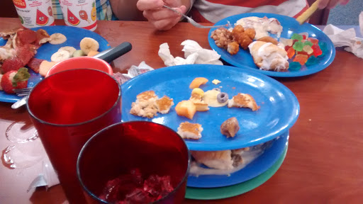 Server nice, but seemed to be only one in large restaurant. Food OK. Had wieners and pulled pork, but didnt see any buns. Kinda dirty and disappointing. My kid was under 12 and got his food for 3.99. That got that second star.
