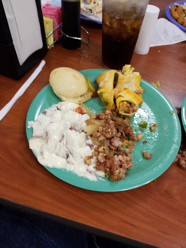 The food here stinks!!!! Theres nothing to eat. Who idea was to have breakfast for lunch and dinner!?!?! Like come on, I thought this place was a restaurant where you could eat a great meal with your family, but apparently its not. I wouldnt recommend this restaurant to anyone. I wish I would have never gone into this place. Their prices are cheap because theres nothing good. The fruits and vegetables arent fresh. They take forever to put more food out... and dont even get me started on how clean the place is!!! I would rather eat a place where the price is expensive because I know that they have better service and food.