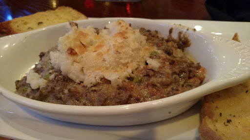 The atmosphere is nice but the glasses are dirty and the food disgusting I ordered three things and couldnt finish any of it. Queso and chips - the queso was more like a sausage gravy than a dip so thick it broke chips trying when to dip them and just tasted like sausage gravy not at all like queso, the scotch eggs were hard as rocks felt like I was going to chip tooth with every bite and the flavor was very bland. The fish and chips was soggy and I mean both the fish and the fries that came with it were practically dripping grease that tasted like it hadnt been changed in days. I dont know if its just this location or what but I wont be eating here again the waitresses were just as lovely as people had told me but that isnt worth the disgusting food I was served . I mean seriously how do you screw up a Guinness? Dirty glass that smells like mildew every time you try and take a drink apparently. Fun update: I have food poisoning now and all the joyous symptoms that go with it.