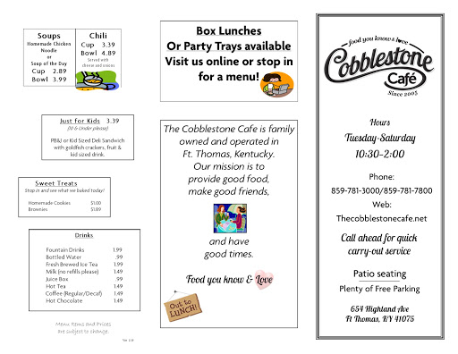 Wonderful place to meet friends and enjoy a delicious lunch in a cozy atmosphere. Dont miss this opportunity in Ft. Thomas.