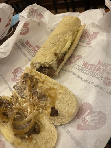 Penn Station serves great food but the wait for it is generally an issue and this location is a little worse than most. The layout contributes to this as theres no out of the way place for people to stand whilst waiting for their carryout so they congregate around the soda fountain. The seating area is bifurcated so that you can sit in the crowded front or rather isolated back near the restrooms. The staff is friendly but frequently overwhelmed. Still, quality food at a fair price.