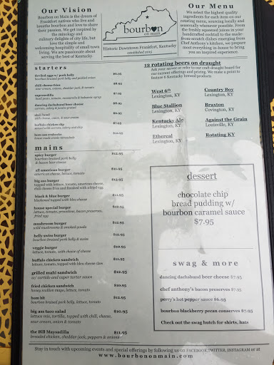 The place looks amazing compared to the Dragon that it replaced. The renovation that has occurred makes you feel like youre in an upscale tavern instead of the old hole in the wall joint its predecessor was. My first experience with BOM was lack luster. I went the opening week and their Bourbon options were non existent. I also didnt get to try their food because I went later in the evening (My fault not theirs). I never went back until recently because it was just very uneventful. I Recently returned and had a great time. The food was tasty with several options (loved the chilli cheese fries), the beer selection was ample with several local breweries on their rotating list, and of course the Bourbon options were plentiful. I came in a large party and was able to be accommodated quite nicely. Our server was polite, fun, and frequently checked in on us. All and all I would say that if you were like me and tried BOM out early and didnt like it, give it another shot. If youve never been before, then go in and see was a local Frankfort tavern should look like.
