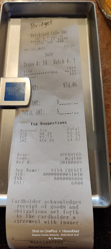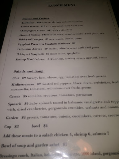 Quaint and comfortable environment in a beautiful and historical building located just off of the square in Franklin, Kentucky. The Brickyard Cafe has a nice variety on their menu including fantastic steaks and daily specials. They have a very attentive and friendly staff and the service is fantastic. Always enjoyable.