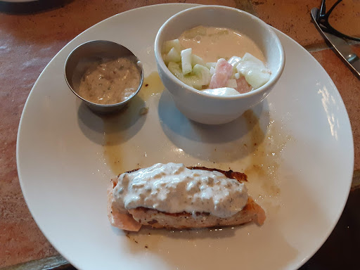 Very neat atmosphere! Drinks from the bar were poured perfect. Had salmon for dinner, very salty. But food as a whole, including appetizers, was very good. We will go back, just wont get the salmon.