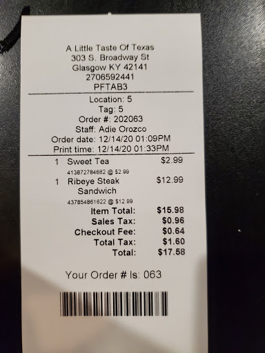 Absolutely the best steak in the surrounding area, great atmosphere, great service, and even great desserts! I have never had a bad experience at A Little Taste of Texas.