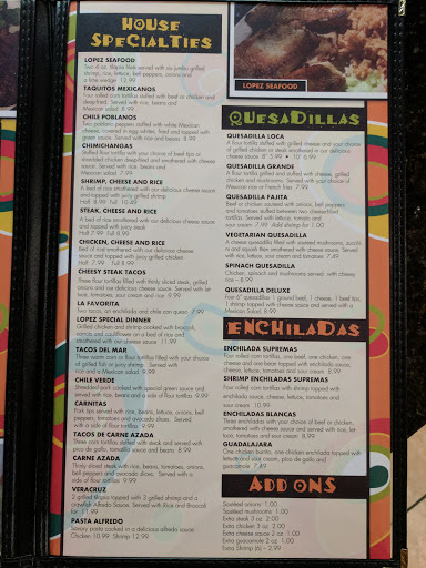 Love all the food fast and friendly service. My husband and I try to come at least twice a month .my favorite dishes are Lopez special dinner or vera cruz.( and the tomatoes are local and home grown makes a great salsa