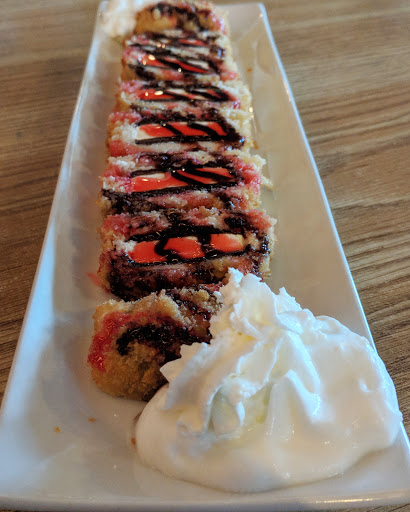 Raw is by far the best sushi Ive ever had. Between the many sushi bars in many states, this bar has one of the best atmospheres, some of the best service, and definitely the best sushi Ive had. Definitely worth it, and one roll plus an app will fill you up quite nicely, and Im a pretty hard one to fill up. I had the Punk Rock roll as well as potstickers and both were great. Expansion of the dessert menu is advised, due to there being only one dessert. Id love to see a dessert roll come out of this place, if anyone could pull it off, itd be Raw. Update: 08/02/16 I stopped by again today. I had the calamari roll. It was as tasty as it was beautiful. They have introduced a new appetizer, called the "Jalapeño Business," and it is wonderful. It definitely puts other jalapeño-popper-style appetizers to shame. Its made with spicy tuna, cream cheese, then deep fried. The jalapeños are large and fully grown, which adds to the flavor. You can tell they are fresh, as are the rest of their ingredients. (Sorry for the two of them, I got a bit excited. It is two full jalapeños, and theyre cut into 8 of the individual pieces.)