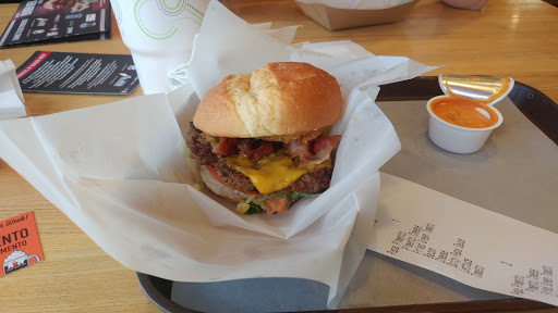 The food here is decent. The prices are higher than you might expect since there are no traditional combinations that you might expect for a burger joint. If you end up getting only a burger and fries with a water to drink, you can come out at around $6 or $7. It adds up quick with anything extra, though. The wait times at this particular location can be longer than you would thing for a burger and fries. I have waited 15 minutes before when it was not very crowded. It is worth a try if you are looking for something different than your regular fast food burger.