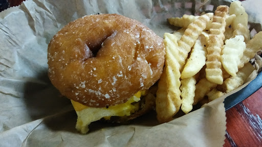 Today was my first time at this establishment and I went with the Spalding. It is a bacon, egg, and cheese burger, served on a Spalding Donut. This burger was cooked so perfectly that I had to give these guys a good review. It was literally the best burger and onion rings that Ive ever had. Im very eager to come back and try the rest.