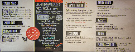 I love eating here. When we go we get the city sampler and up size the sides and its enough to feed 3 adults and 2 kids. Everyone is always friendly and our cashier was super helpful in helping us decide what to order. The meat is great without any sauces, but of course we always add sauce. Indoor and outdoor seating. Love it!